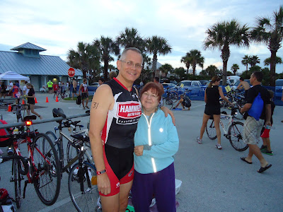 This is my first tri after my injury at the Scenic 17 Tri seven weeks ago. I bruised tendons on my right foot stepping off the road on the run leg. I didn't do any activity (did RICE) for a week after and my right foot turned purple. I resumed swimming and cycling cautiously as it healed and did a few 1-2 mile runs in the last 2 weeks. I thought the Clermont Sprint would be a good first race back.