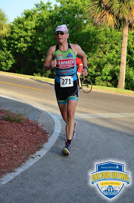 Saturday was the fourth and last Clermont Sprint Triathlon of the year. I was looking forward to a strong finish for the year as I missed the third race due to Sandy's knee replacement. Many of my friends from Seminole County Triathletes were there along with my usual competition. Weather was perfect at 73' at the start and Lake Minneola had cooled down from Hurricane Hermione's heavy rains the previous weekend. I racked my bike right next to a big Hammer Nutrition sign too.